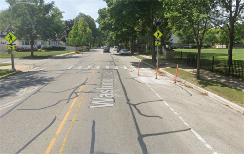 Washington Boulevard is a 2-Lane bidirectional Major Collector in the Village of River Forest. The Average Daily Traffic (ADT) as of 2022 is 5,700 vehicles with a posted speed limit of 25 Miles Per Hour (MPH). Speed limit signs are posted for both directions periodically through the corridor including a driver feedback sign for eastbound drivers. There is striped on-street parking provided on both sides of the road throughout the corridor. Washington Boulevard is designated as a bike path within the Village. Bike facilities along Washington Blvd include on-street pavement markings for shared lane usage but no dedicated bike lane. In total there are two signalized intersections, two all-way stop intersections, and four minor leg stop intersections where Washington Blvd is the non-stopping route.